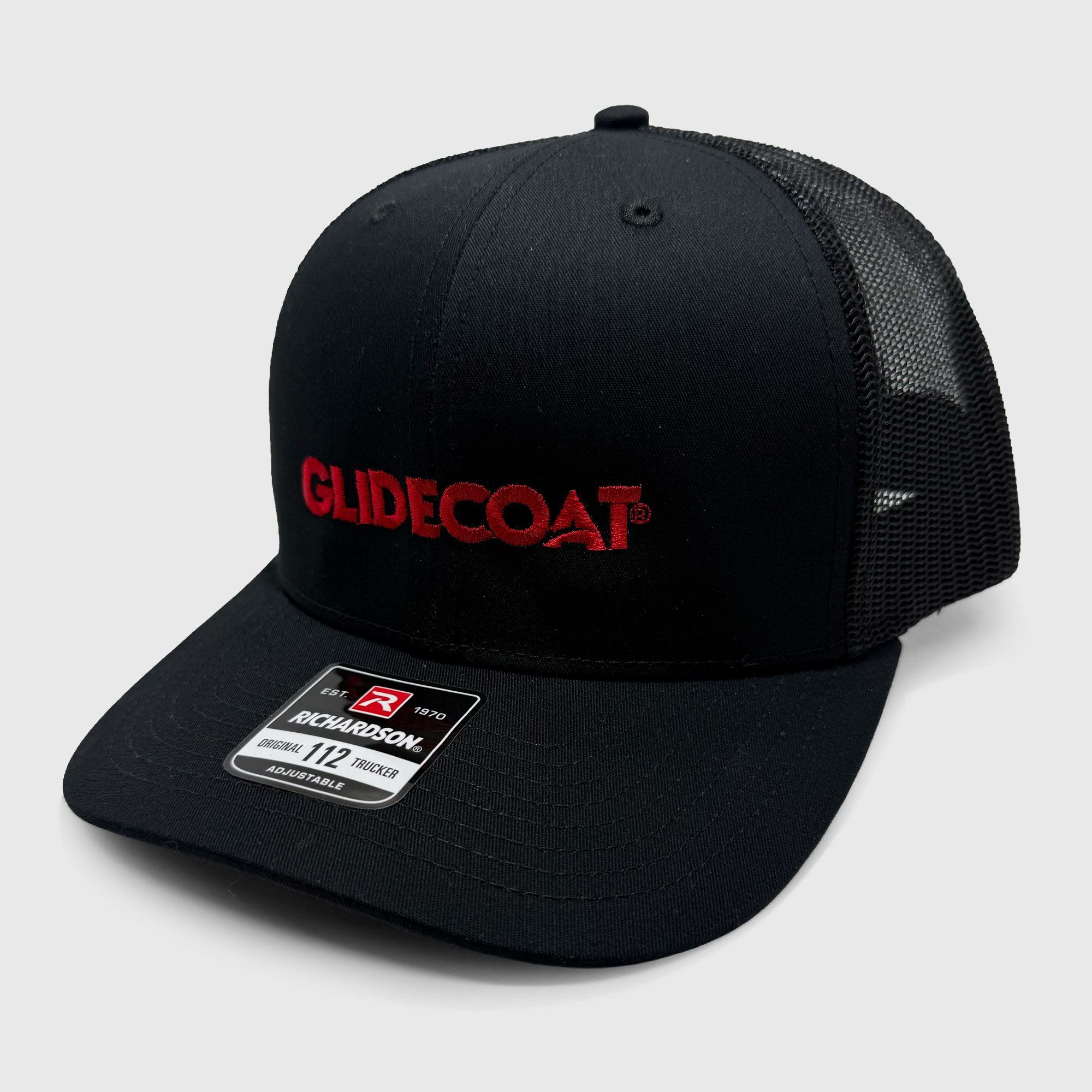Classic six-panel mesh trucker cap with adjustable snapback. Features the Glidecoat logo in red across the front panels with slightly curved bill and mesh back for maximum breathability.